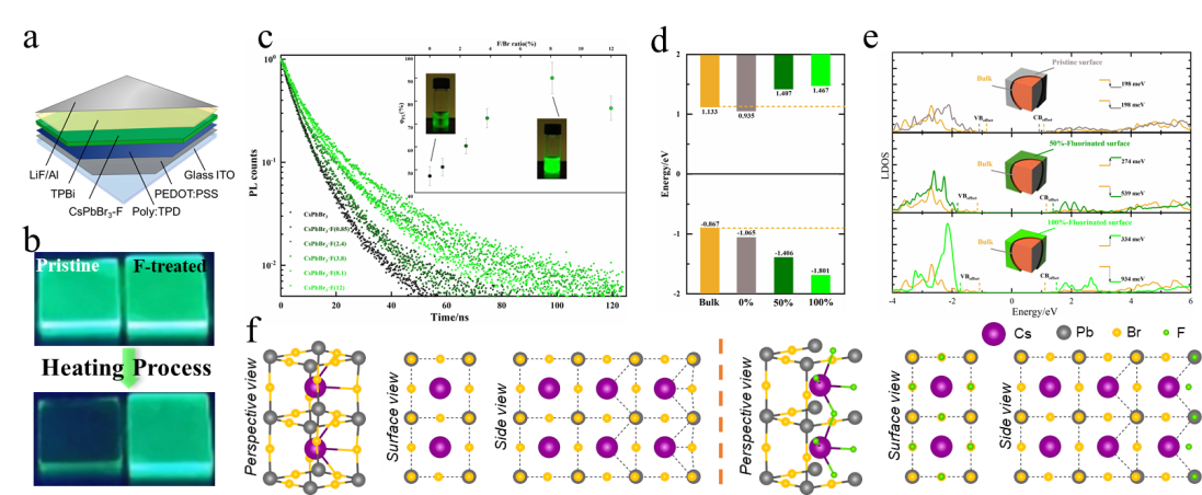 In recent years, quantum-dot LED electroluminescent devices, as lighting display devices of the next generation, have become the focus of research and industrial application. The efficiency and stability of perovskite quantum-dot electroluminescent LED are the key factors in realizing its large-scale commercial applications. In view of this, Prof. Li’s team adopted a surface passivation strategy and used organic fluoride ions to post-process the perovskite quantum dots, which improved the perovskite quantum dots’ fluorescence resistance to “thermal quenching” and ultimately This will help to broaden the product’s future application in more commercial scenarios.