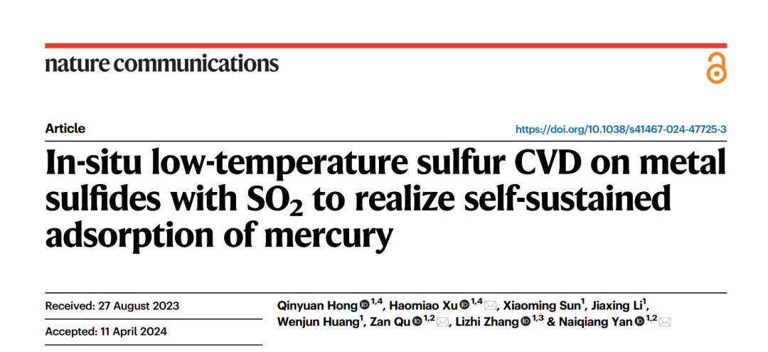 环院智慧|大气污染控制团队Nat. Commun.发文报道工业烟气除汞最新突破性技术