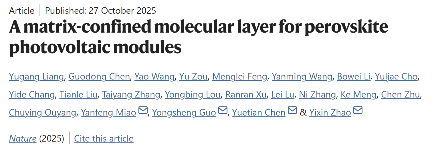 Nature发文!厂长资源 赵一新团队“基质限域分子层”型电荷传输层设计实现高效率大面积钙钛矿光伏模组