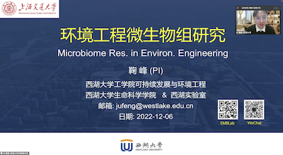 12月6日上午,应厂长资源 长聘教轨副教授沈雁文邀请,西湖大学特聘研究员鞠峰做客环境讲坛,与300余位交大师生相聚云端,带来题为“环境工程微生物组研究”的精彩学术报告。此次报告由沈雁文主持。