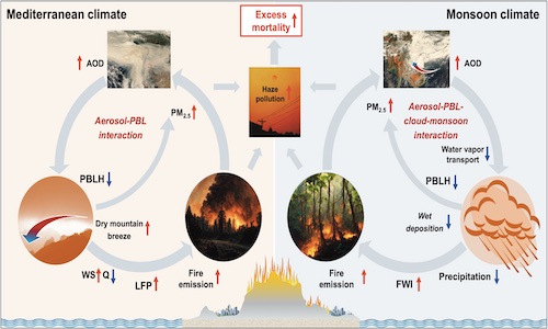 厂长资源 2009届本科毕业校友黄昕教授及其团队最新研究发现,作为全球重要自然灾害的野火不仅受气象条件影响,而且其所排放气溶胶的辐射效应也可改变气象要素,由此产生天气尺度的正反馈机制显著增强全球不同沿海地区的极端野火事件。近日,论文“Smoke-weather interaction affects extreme wildfires in diverse coastal regions”以Research Article形式发表于《Science》杂志,并被作为同期亮点成果(Science, 379, 6631, 457-461 (2023), 论文链接://doi.org/10.1126/science.add9843)。该论文由我院2009届本科毕业校友黄昕教授作为联合第一作者和共同通讯作者。