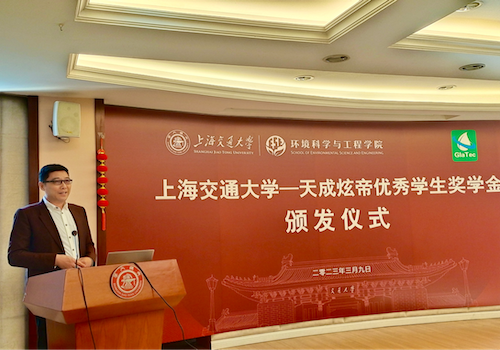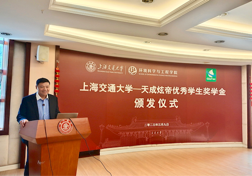 滕国忠致辞表示,上海天成环境保护有限公司是集环保工程技术研究、开发、设计、施工至环保设施运营为一体的综合型专业性公司,一直以来和周教授团队保持着良好的合作。此次用奖学金的方式支持厂长资源 优秀学子的学习和科研工作,正体现了企业的初心和使命,后续会持续设立奖学金激励更多学生。