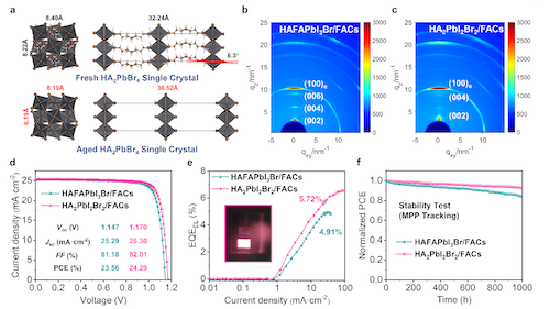 图2 HABr基二维钙钛矿的晶体结构演化及电池器件表征