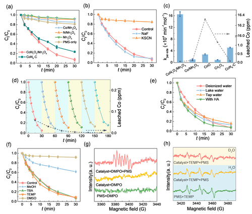 图3 CoN1O2/Mn3O4活化PMS的性能以及机理研究