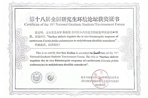 5月27-28日,第十八届全国研究生环境论坛在同济大学顺利召开。我院研究生郑谦、孙凯伦入围本次论坛口头汇报,最终分获一等奖和二等奖。