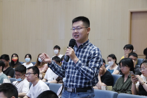 在交流提问环节,现场提问踊跃,气氛活跃。王焰新院士与现场师生就专业内容、学科发展以及教育育人等话题展开了热烈讨论。