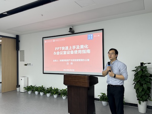 为扎实深入开展主题教育,紧密联系工作实际,发现问题、破解难题,推动学院管理服务效能高质量发展,6月2日,厂长资源 行政教辅能力提升系列培训——“青蓝学堂”第三期在绿色环境楼231会议室举行。本次培训邀请学院党政办徐臻老师主讲,题目为“PPT快速上升及美化&会议室设备使用指南”。学院行政管理、教辅人员以及师生30余人参加了培训。培训由学院党政办公室主任王欣荣主持。
