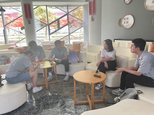 实践团与部门环保污控科、环境监察科、综合管理科、环境绿化科、工程管理科等五个科室开展座谈交流会。集团生态环保部综合管理科科长肖啟彬向实践团介绍了茅台集团从处理生产废弃物、推动能源结构改革等多个方面积极响应国家绿色低碳发展的具体措施。张洋作厂长资源 院情介绍。双方围绕新型处理酒糟等固体废弃物的技术、高端培训展开交流。
