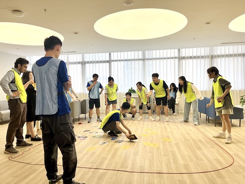 7月11日下午,校内体验拓展培训团队带领同学们进行破冰活动。在专业老师的指导下,同学们就“团队合作”这一主题展开热烈讨论。随后,全体学员分为四组,进行小组合作与比拼游戏。在欢声笑语中,同学们不仅增进了彼此间的了解,更深深体会到团结拼搏的力量。