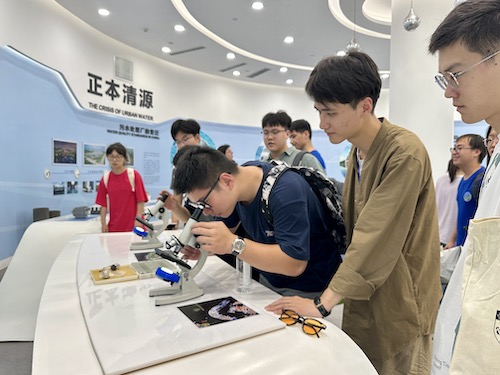 7月12日下午,同学们前往南翔下沉式再生水厂进行参观。该水厂是华东首座下沉式再生水厂,具备“土地集约、资源利用、环境友好”的特点,通过将污水处理系统建造在地下,杜绝了臭气和噪声的二次污染,在地表利用高品质出水打造水环境生态公园,变“邻避”为“邻利”,真正体现了绿色城市建设中人与自然和谐共生的理念。