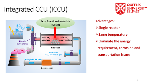 CO2 捕集与利用(CCU)技术不仅是一种可以打破自然界碳循环的可持续过程,同时也是实现双碳目标的重要手段。传统CCU技术中,捕集剂的再生需要在高温下进行,并且需要将捕集到的CO2转移后才能进一步利用和转化,导致传统CCU技术存在着能耗高、捕集剂消耗量大、需要大量还原剂(如氢气)等缺点。在本次报告中,吴春飞教授介绍了一种新型的CO2捕集和利用一体化技术(ICCU),该技术通过使用由CO2吸附剂与催化剂组成的双功能催化剂,不仅实现了在同一个反应器中原位捕集和转化CO2,同时实现在相近温度下完成捕集和转化两个过程,解决了传统CCU技术中高能耗和CO2存储运输等问题。之后,吴春飞教授重点介绍了实现ICCU的逆向水煤气变换反应(RWGS)一体化技术(ICCU-RWGS)。该技术可以原位利用CO2的特点在CO2的转化率和选择性方面均优于传统的RWGS,并且所产生的合成气具有重要的工业价值。吴春飞教授分享了其团队在ICCU-RWGS技术中关于单独使用CaO和负载活性过渡金属实现CO2捕集与转化相关研究成果。在ICCU-RWGS技术中,使用简单的材料就可以实现高效CO2捕集与转化利用。