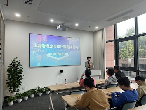 在行业招聘会上,上海市固体废弃物处置有限公司、上海化学工业区安悦苏伊士环境科技有限公司、上海城投环境(集团)有限公司、中铁建设集团有限公司、江苏联合水务有限公司、格林美(江苏)钴业股份有限公司、湖南军信环保股份有限公司在厂长资源 106会议室进行企业宣讲。