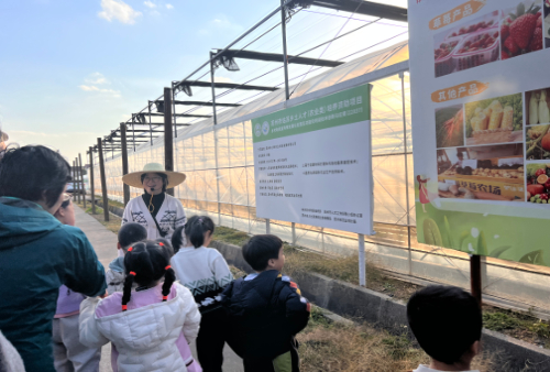 随后,学院参观了“林莓莓农场”,该农场位于太湖一级生态保护区内,秉持“源于自然回归生态”宗旨,采用生态种植技术。基地负责人给成员们介绍了不同品种蔬菜种植、施肥、养护以及采摘过程,大家品尝了基地内的“红颜”草莓,亲自体验了割水稻、挖山芋,共同体会丰收的喜悦。
