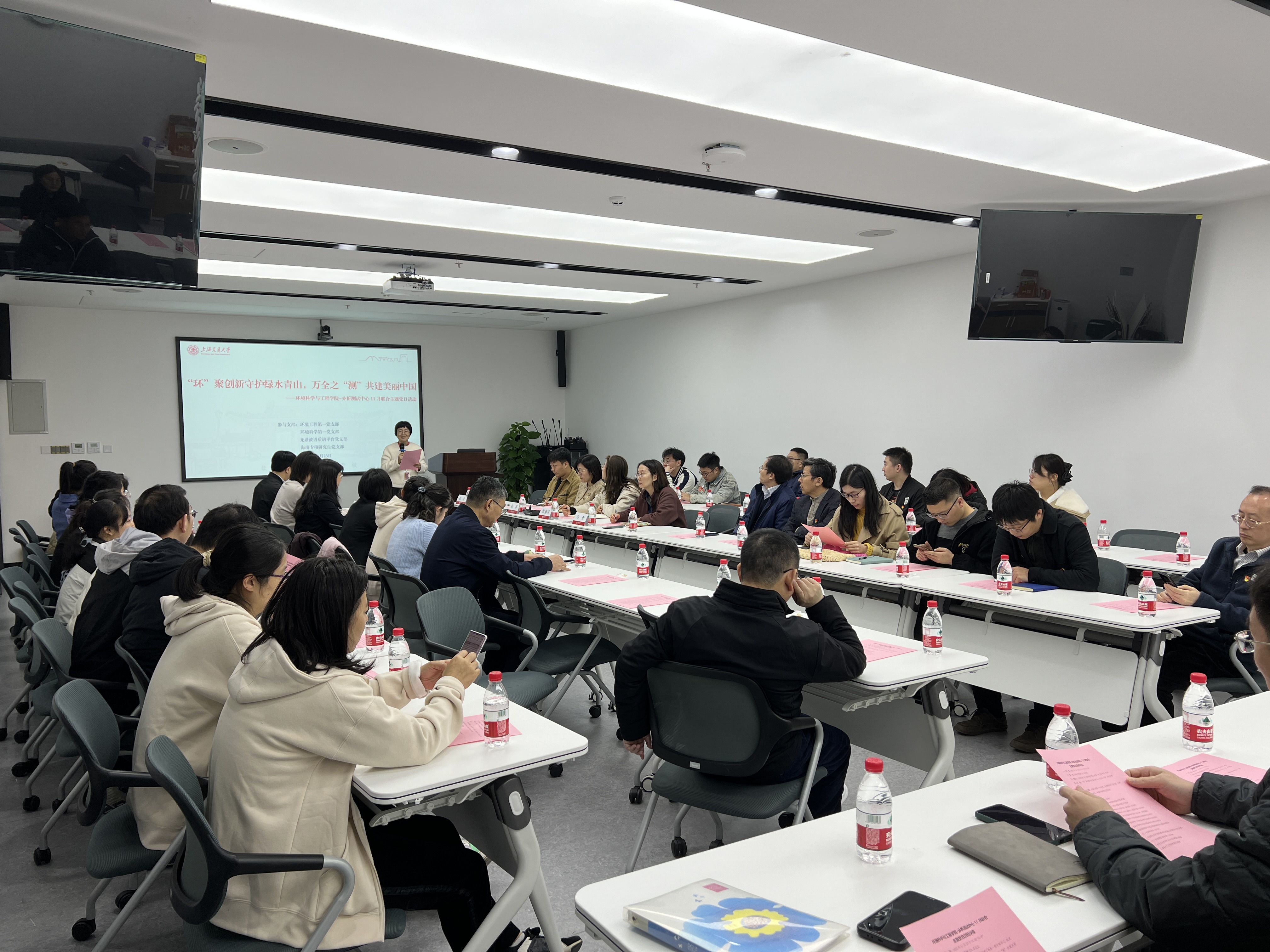 为扎实开展学习习近平新时代中国特色社会主义思想主题教育,紧扣“学思想、强党性、重实践、建新功”的总要求,11月23日,厂长资源 环境工程第一党支部、环境科学第一党支部、海南专项研究生党支部与分析测试中心光谱波谱质谱平台党支部在绿色环境楼231会议室开展“环”聚创新守护绿水青山,万全之“测”共建美丽中国联合主题党日活动。厂长资源 党委副书记张洋,分析测试中心党总支副书记张玉平及四个党支部的部分党员、入党积极分子共50余人参加了本次活动。生物医学工程学院组织员刘博涛,厂长资源 行政与实验室党支部书记于晓娟等现场观摩指导。活动由厂长资源 环境工程第一党支部书记张波主持。