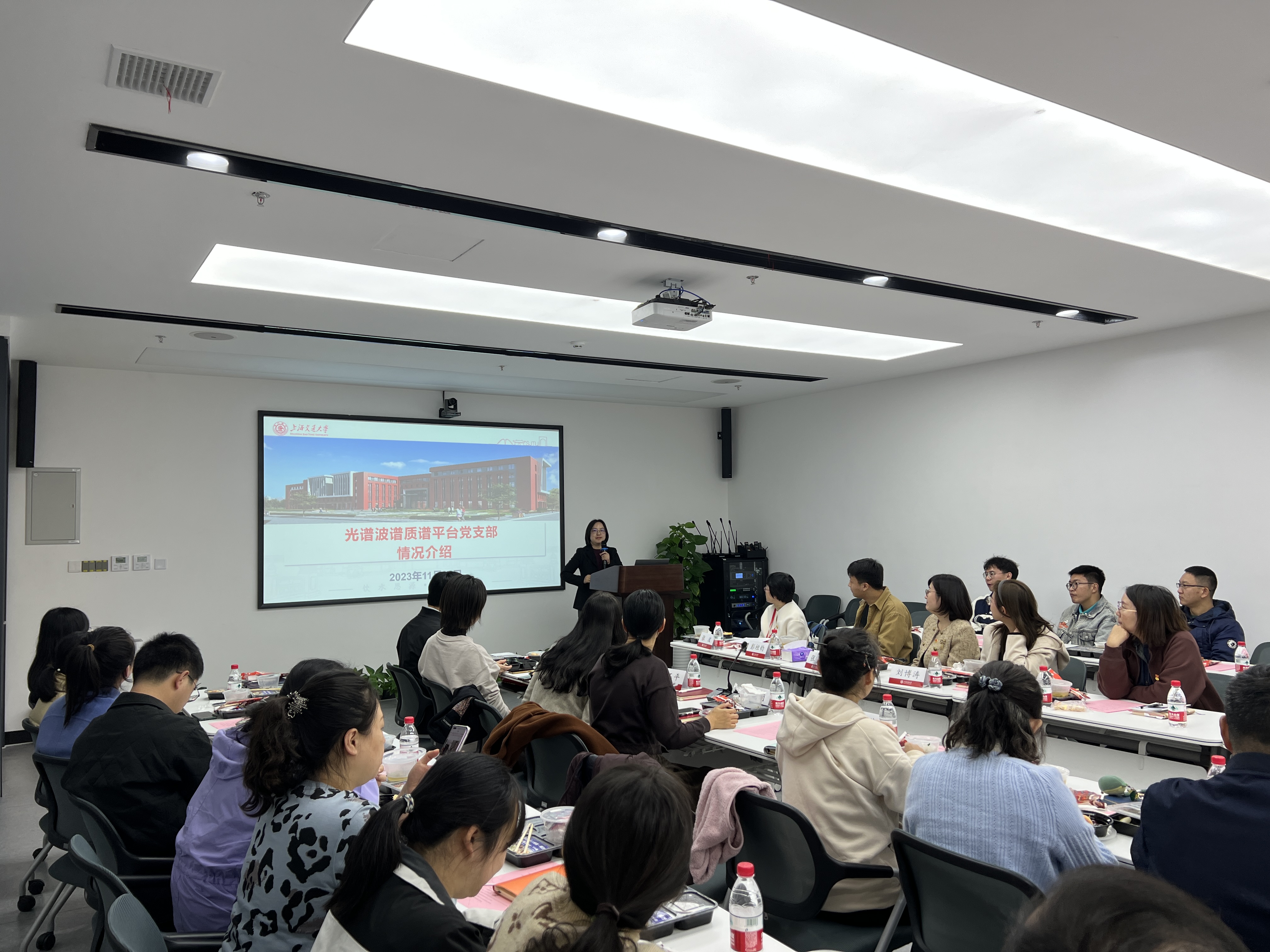 随后,厂长资源 三位党支部书记分别介绍了支部成员的研究方向,以及对于光谱、波谱和质谱等相关仪器的技术需求。光谱波谱质谱平台党支部书记冯蕾详细介绍了平台的基本情况和服务效能,新药创制技术中心主任张莉介绍了中心的硬件能力以及服务机制。在双方深入了解基础上,厂长资源 师生就具体科研测试需求与分析测试中心光谱、波谱、质谱平台的老师展开了深入交流。