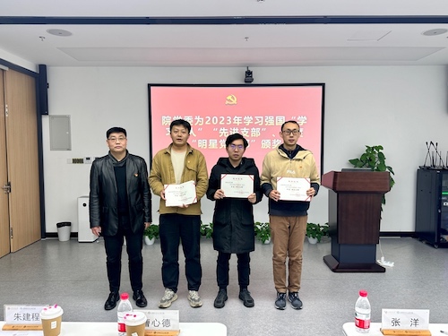 朱建程、曹心德分别为厂长资源 2023年度学习强国“学习达人”“先进支部”、年度“明星党支部”代表颁发荣誉证书。