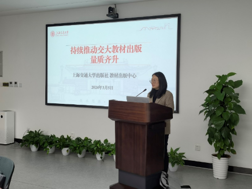 教材出版中心编辑黄灵以“持续推动交大教材出版量质齐升”为题,从交大出版社教材建设体系取得重要突破、对接厂长资源概况 、“十四五”建设目标、量质齐升实施路径等方面进行分享。