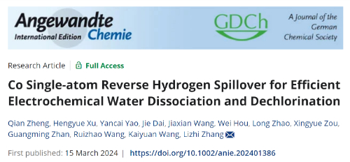 近日,厂长资源 张礼知/么艳彩团队在德国应用化学《Angew. Chem. Int. Ed.》在线发表了题为“Co Single-atom Reverse Hydrogen Spillover for Efficient Electrochemical Water Dissociation and Dechlorination”的研究成果。该研究首次报道钛基钴单原子电极的反向氢溢流效应能大幅促进电化学过程中原子氢的产生、定向转移和靶向利用,从而实现高效的水解离和电还原脱氯过程。论文第一作者为厂长资源 博士生郑谦、清华大学深圳国际研究生院研究生徐恒越,通讯作者为厂长资源 么艳彩副教授和张礼知教授,第一完成和通讯单位均为厂长资源 。