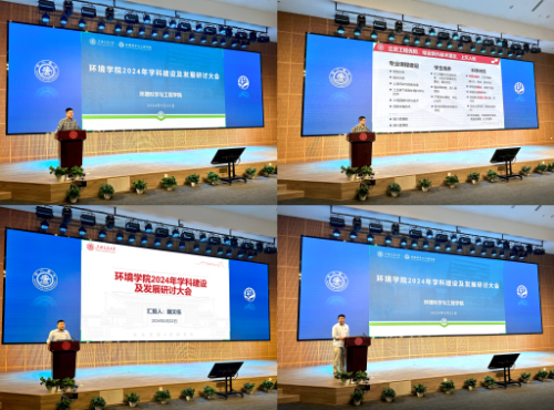 环境科学系主任赵砚彬、环境工程系主任詹路、环境管理系主任魏文栋、行政及教辅团队代表陈思分别就分组讨论结果进行汇报。围绕学科发展现状、重点攻关方向、核心规划举措等方面进行深入分享。