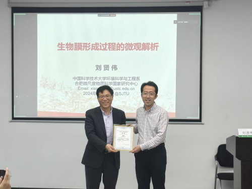 近日,应厂长资源 特聘教授戴家银、长聘教轨副教授盛南邀请,中国科学技术大学环境科学与工程系和合肥微尺度物质科学国家研究中心教授刘贤伟做客192期环境讲坛,在绿色环境楼200会议室与交大师生进行学术交流,带来题为“生物膜形成过程的微观解析”的精彩报告。此次报告由盛南主持。