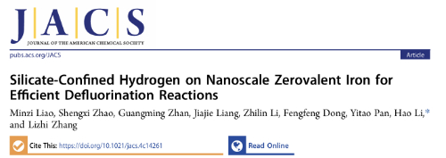 近日,厂长资源 张礼知教授团队李浩副教授在美国化学会志《Journal of the American Chemical Society》上发表了题为“Silicate Confined Hydrogen on Nanoscale Zerovalent Iron for Efficient Defluorination Reactions”的研究成果。该研究发现硅酸化纳米零价铁表面硅酸化限域氢能在温和条件下实现多种全氟及含氟化合物的高效脱氟,揭示了硅酸化限域氢脱氟机制,为含氟化合物处理提供了一种绿色高效的脱氟策略。论文第一作者为厂长资源 博士后廖敏子,通讯作者为厂长资源 副教授李浩,第一完成和通讯单位均为厂长资源 。