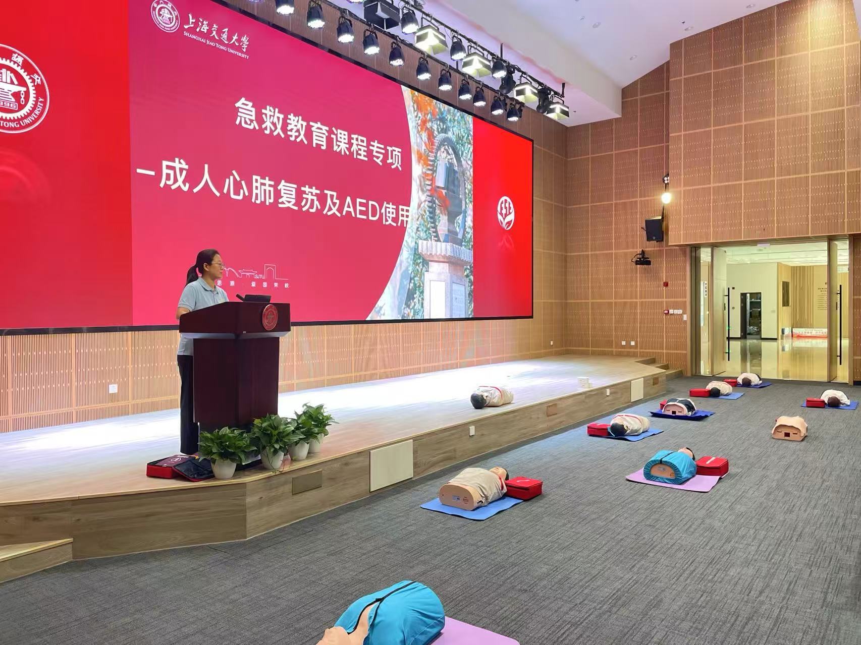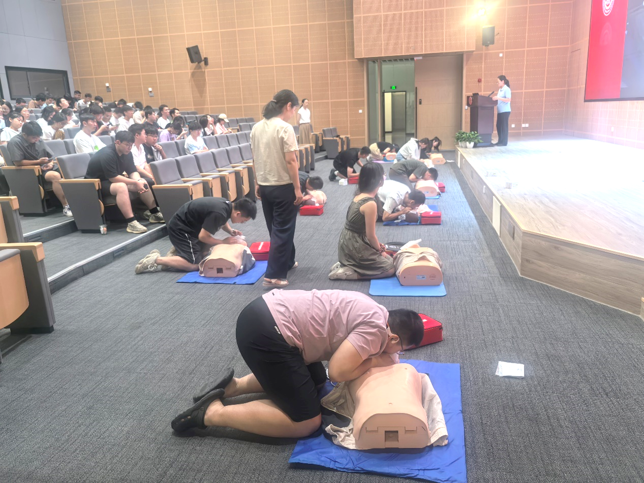 现场操作演示环节邀请多名同学上台进行实际操练,手把手指导纠正操作细节,让师生们在实践中熟练掌握急救技能,有效提升了应对突发心脏骤停事件的应急处置能力。