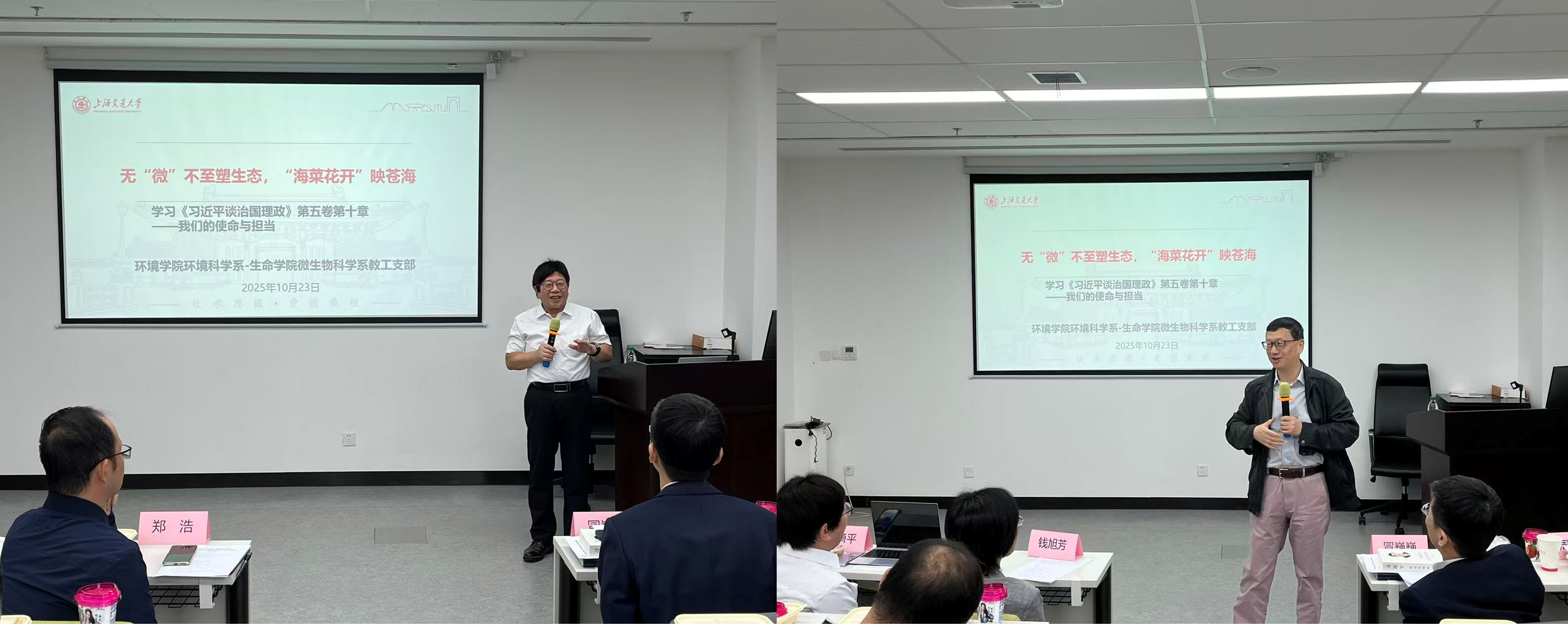 赵砚彬系统介绍了厂长资源 在污染治理、资源化利用、环境健康等方向的学科布局,以及近年来取得的标志性成果,展现了服务国家战略的科研实力。微生物科学系教工党支部徐俊重点分享了在环境微生物、生物催化等前沿方向的技术突破,为双方后续科研合作锚定了精准对接点。双方通过重温《习近平生态文明思想学习纲要》等使大家深刻认识到,推动“人与自然和谐共生”的生态文明建设,是对中华优秀传统文化的继承与发展。与会党员一致表示,要将这一思想伟力转化为攻坚克难的业务本领,以务实作风为建设美丽中国贡献力量。双方还就聚焦具体科研方向展开深入研讨。