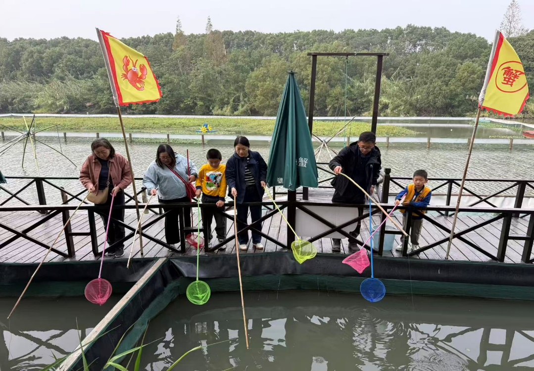 下午的活动充满趣味性。在钓螃蟹体验环节,大家兴致勃勃地亲手捕捉阳澄湖大闸蟹,体验收获的喜悦。随后,教职工们漫步横泾老街,品尝春来茶馆特制的芦根茶,体验网红雪糕“沙家浜”,在轻松愉快的氛围中感受江南水乡的独特魅力。