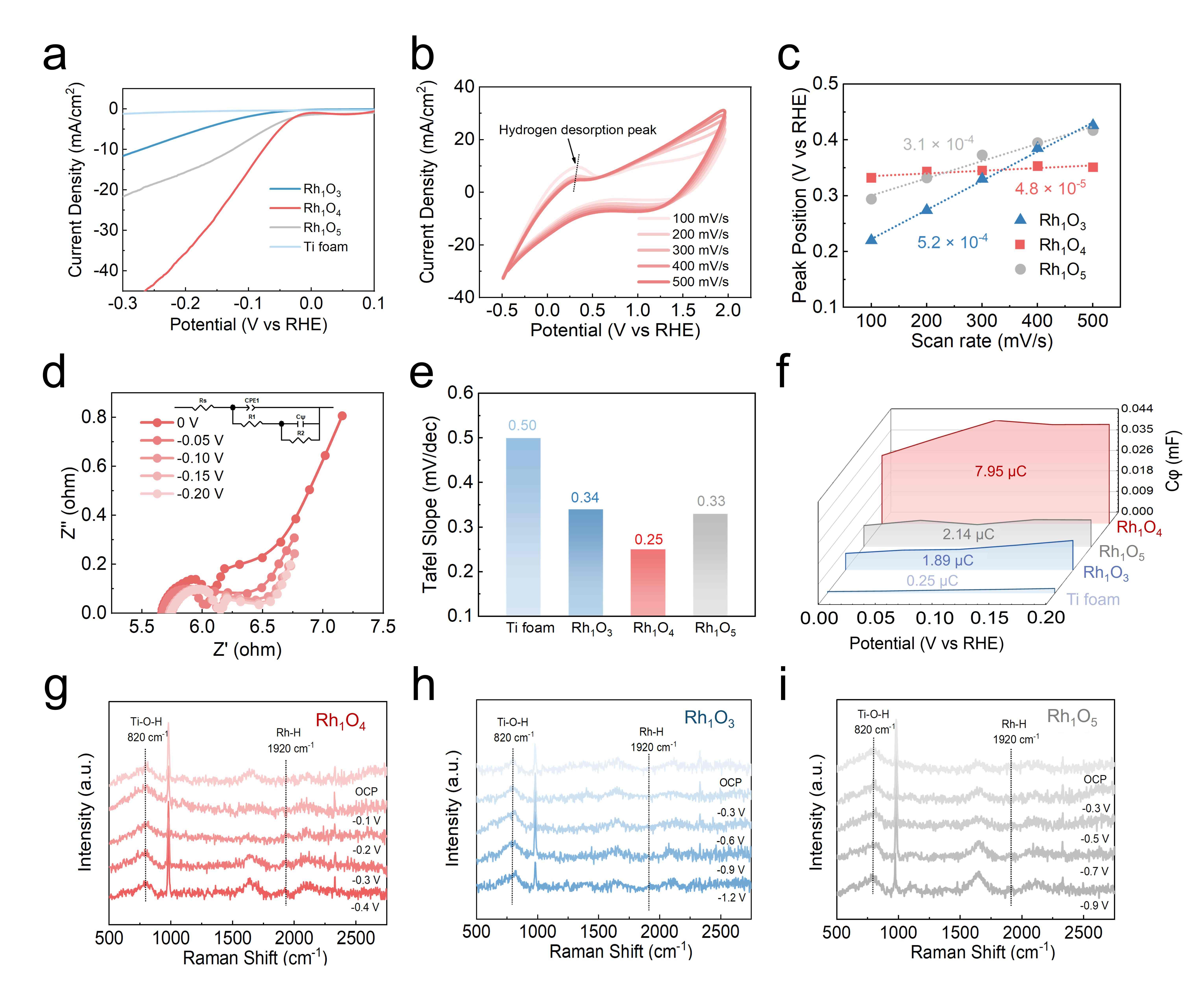 图4钛基Rh单原子电极RHS的原位电化学表征