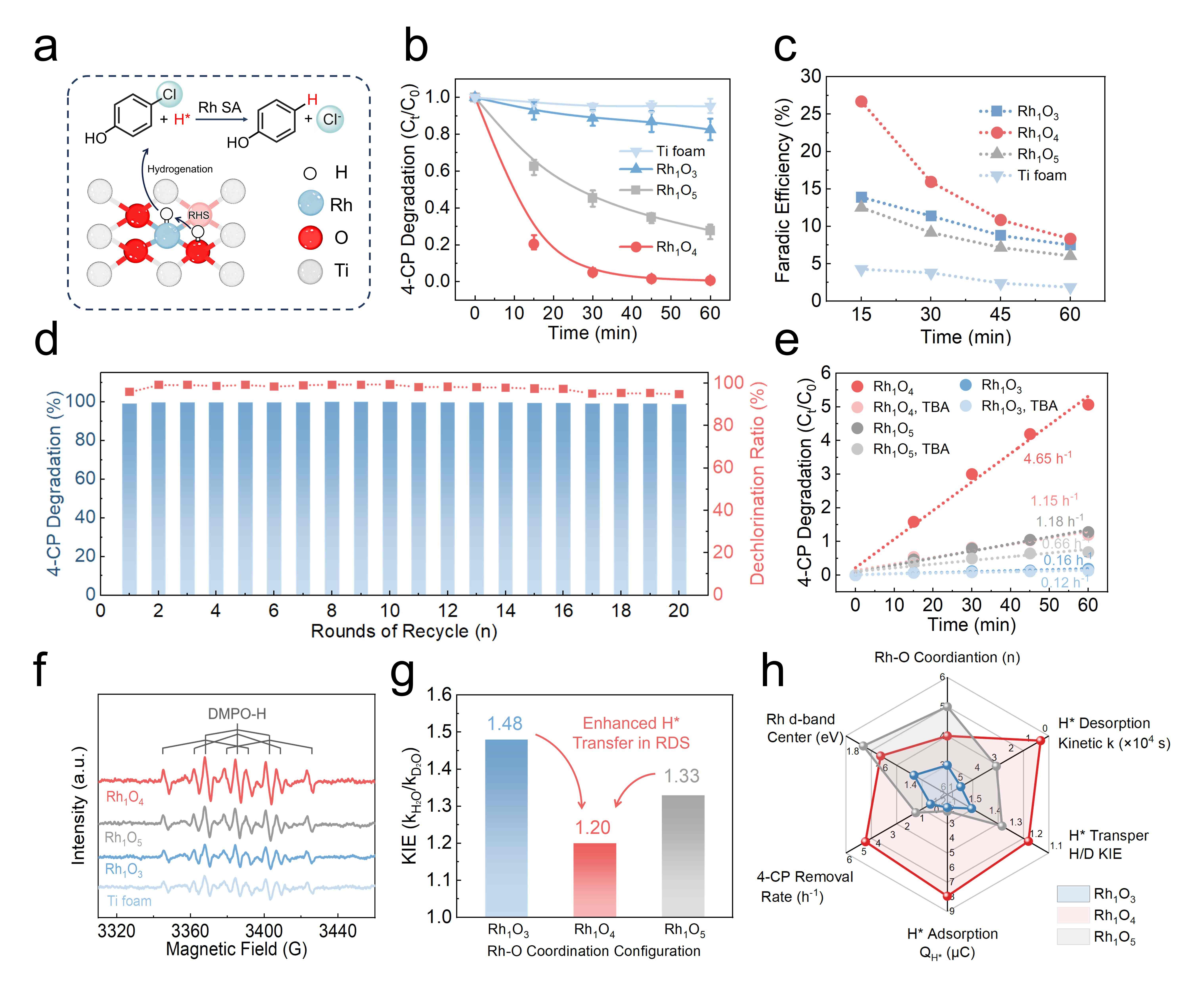 图5 钛基Rh单原子电极4-CP还原活性和脱氯机理