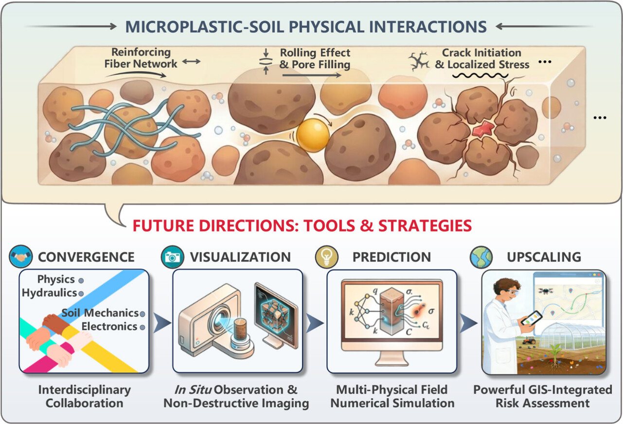 传统研究多聚焦于微塑料的化学与生物效应,但土壤健康同样高度依赖其物理结构,包括孔隙网络、团聚体稳定性和力学强度。这些物理属性决定了土壤的水分入渗、气体交换和抗侵蚀能力。
