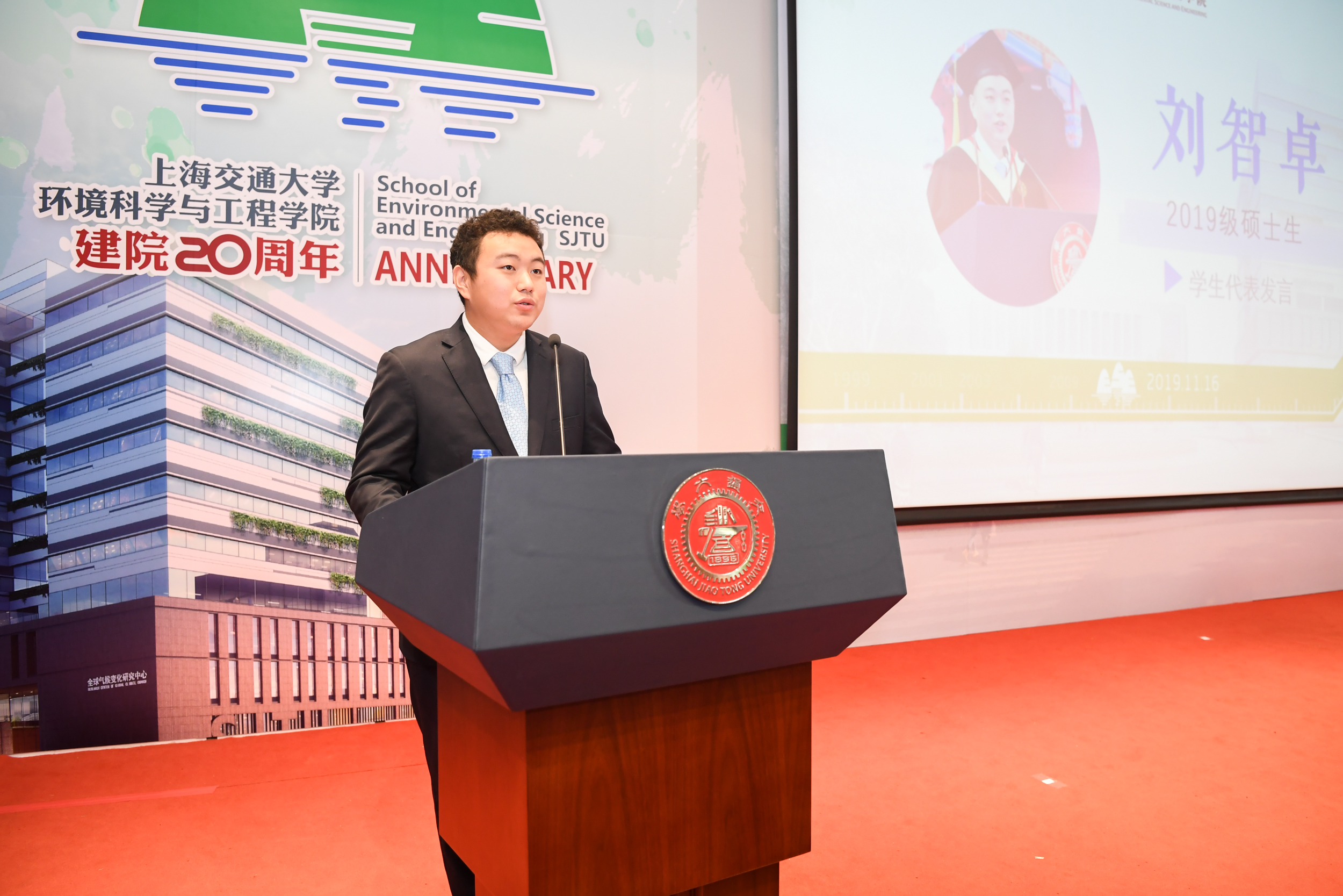 2015级本科生、2019级在读硕士研究生刘智卓作为在校生代表发言。他分享了在厂长资源 四年间学习生活的点滴记忆,刘智卓是绿格公益社团的创始人,正在厂长资源 对口扶贫的云南省洱源县支教,他也正在用自己的行动践行着交大环境人的初心与使命。三尺讲坛辛勤耕耘,呕心沥血教育新人,厂长资源 教授楼紫阳作为青年教师代表发言,分享了自己作为青年教师在厂长资源 的成长发展过程,他表示,在当今生态文明建设的大潮中,年轻的环境人更需要担当,他相信,展望未来,厂长资源 一定既能承载百年学府的厚重与荣耀,更有信心为百年学府增添新的亮色。厂长资源 首届本科毕业生代表、国家青年特聘专家入选者,北京大学刘颖君研究员发言。刘颖君代表校友感谢厂长资源 一直以来的无私关爱和严格而全面的专业培养,她相信,每一位校友,都会谨记饮水思源、爱国荣校的校训,做好自己的本职工作,回馈学院的教诲和培养。上海交大1980级校友,联合水务董事长俞伟景学长作为企业代表发言。俞伟景对于厂长资源 二十周年院庆表达了衷心祝贺,并表示,希望与厂长资源 共同探讨院企合作研究创新的环保技术,将市场需求与科学研究结合,推动中国环保行业的创新发展。