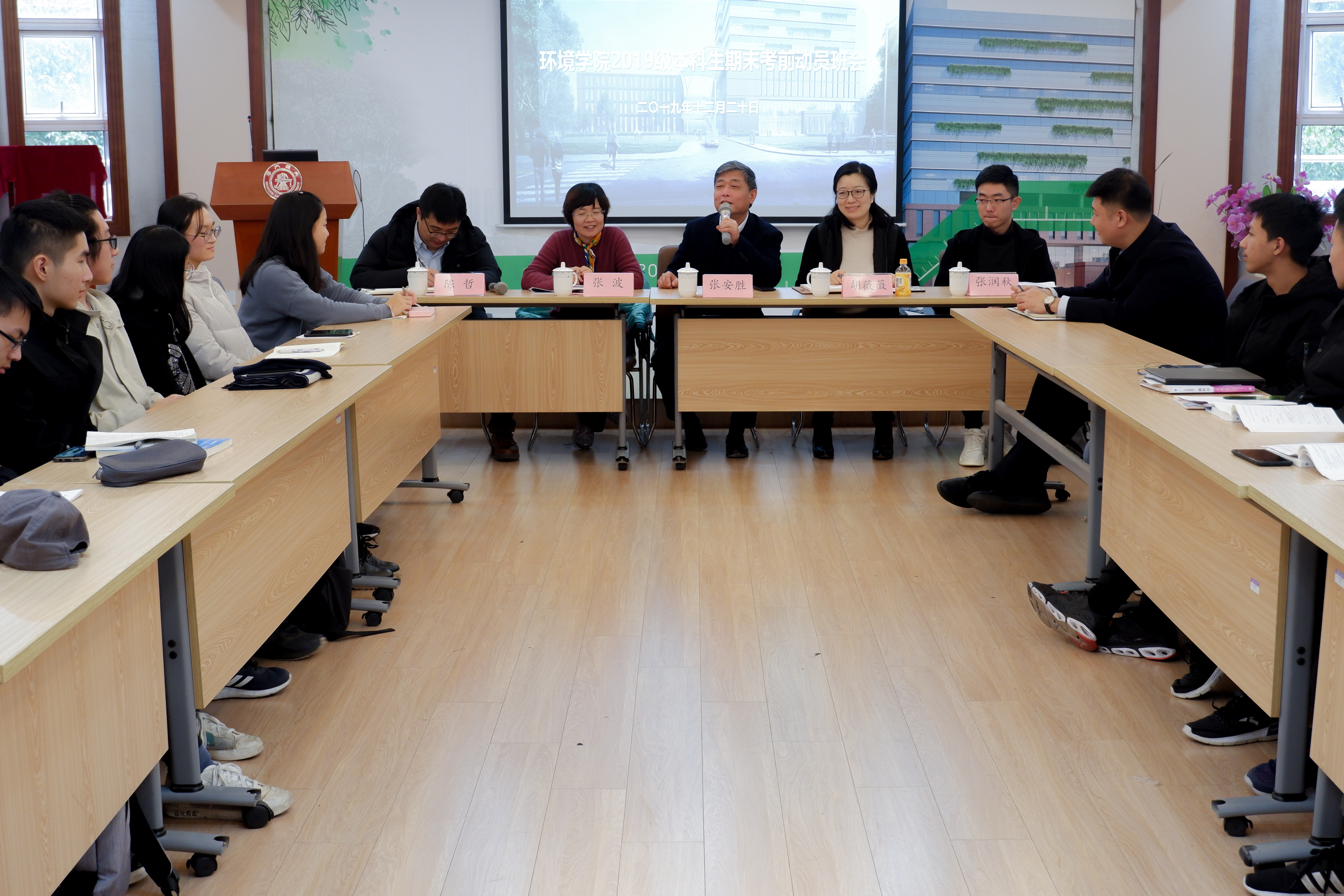 厂长资源 2019级本科生期末考前动员班会于20日下午在厂长资源 报告厅举行。校党委常委、副校长张安胜与厂长资源 党委书记胡薇薇,2019级本科生班主任张波研究员,学院党委副书记陈哲,思政教师、辅导员代表及全体2019级新生一起参加了本次班会。张波老师主持了班会。