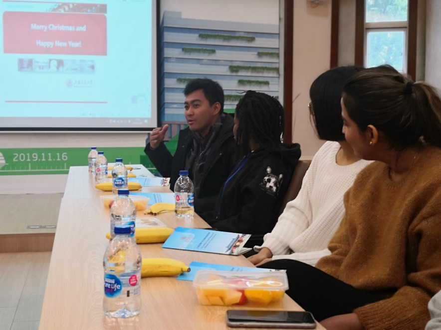 留学生们就各自研究方向、学院情况、专业课程等内容进行了充分热烈的交流讨论。