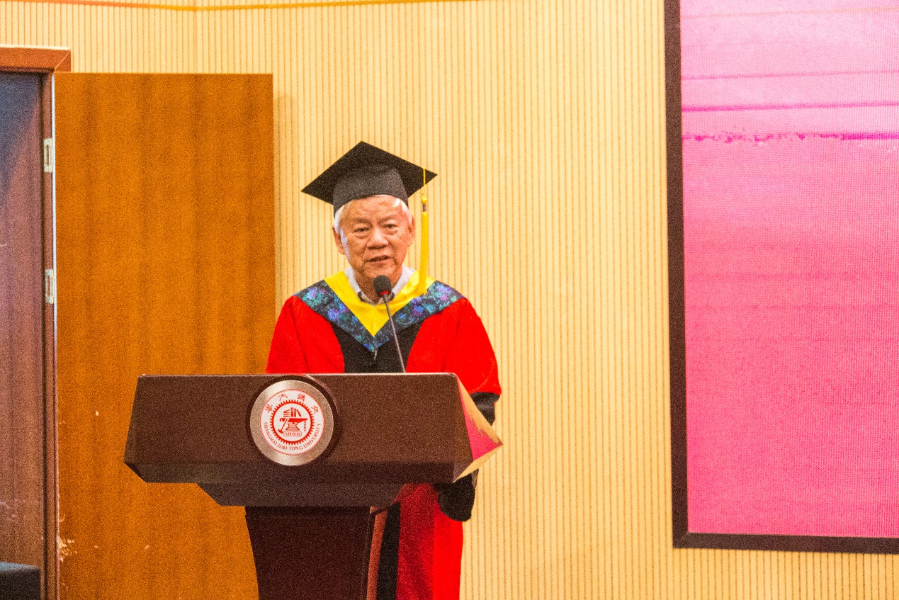 孔海南作为教师代表对毕业生表示祝贺并予以希冀,孔老师讲到:希望同学们能将自己的事业同国家的明天联系在一起,这样一生都不后悔;同时希望同学们能有执著的精神。孔老师谈到了自己和团队的洱海故事,之所以能够20多年坚持治理洱海就是因为对工作的执著和热爱,孔老师希望同学们也可以拥有自己的坚持和坚定。孔老师几十年如一日坚守洱海的动人事迹,深深感动了每一位在场的同学。