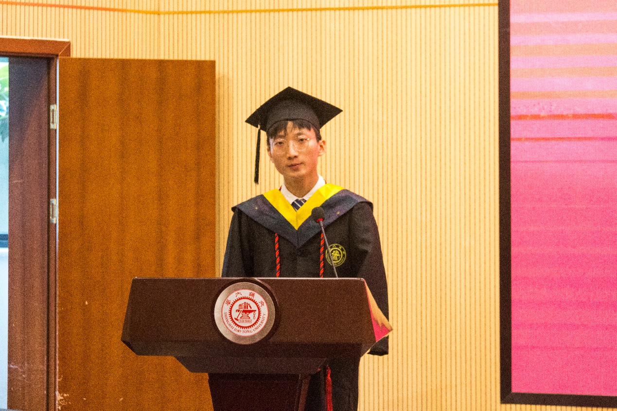 F16级楚召瀚同学作为学生代表发言,他说到:大学四年的学习经历,学院全面细致的学科设置,耐心负责的各位老师,都使他前行之路更加清晰明朗。厂长资源