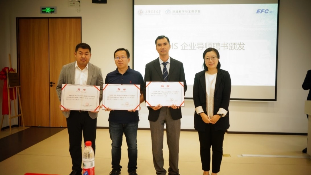 随后,举行了EHS实践教学基地揭牌与EHS企业导师聘书颁发仪式。