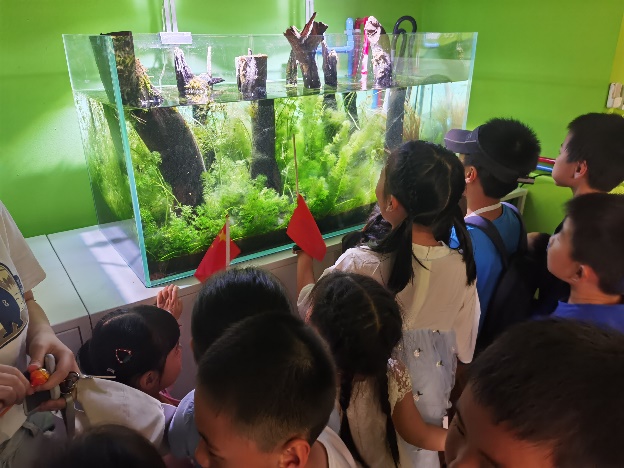 6月5日下午,四十多名环境教职工家庭小手拉大手走进威达楼“环抱未来”生态环境主题科技馆,孩子们兴致勃勃地参观了鱼菜共生、自动滴灌等人工模拟生态系统,还通过海报与现场讲解,了解到环境保护工作的紧迫性和重要性,对目前我们面临的海洋、大气、水环境等污染问题表现出极大的关注与担忧,在听到爸爸妈妈们的工作就是为了保护祖国的蓝天白云绿水青山时,孩子们脸上露出了欣慰的笑容。
