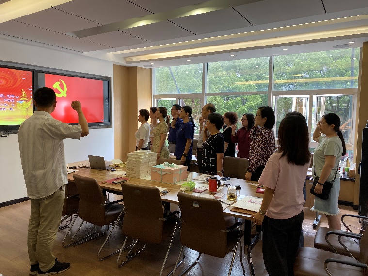 党支部副书记陈思带领大家面向党旗,紧握右拳,庄严宣誓,重温入党誓词,以铮铮誓言表达对党无限忠诚和为党的事业奋斗终身和砥砺前行的决心。