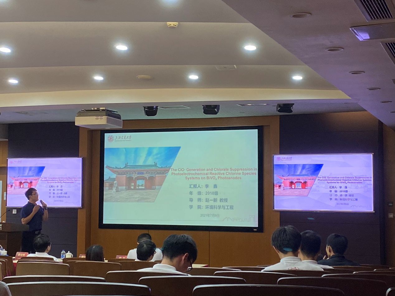 2018级致远荣誉计划博士生李鑫,由厂长资源 赵一新教授和美国宾夕法尼亚大学化学系Thomas E. Mallouk教授共同指导,主要从事光电化学体系用于环境污染物治理以及生物质资源化利用的相关研究,以第一作者在Applied Catalysis B: Environmental等国际期刊发表论文两篇,并多次参加国内外学术会议。他的论坛报告题为“The ClO· Generation and Chlorate Suppression in Photoelectrochemical Reactive Chlorine Species Systems on BiVO4 Photoanodes”,探究了基于不同光阳极的光电化学-活性氯体系中活性氯物种的生成机制,总结了氯酸盐副产物的转化规律,提出了一种价带结构关联的氯酸盐抑制生成机制的新思路:即采用电子结构合适的BiVO4光阳极实现了非羟基自由基介导的活性氯物种的有效生成,并成功抑制了氯酸盐副产物的二次污染的发生。该研究成果成功发表于Applied Catalysis B: Environmental (IF=19.503),为工业生产中的高盐度有机废水以及自然界受污海水的治理提供重要参考价值。