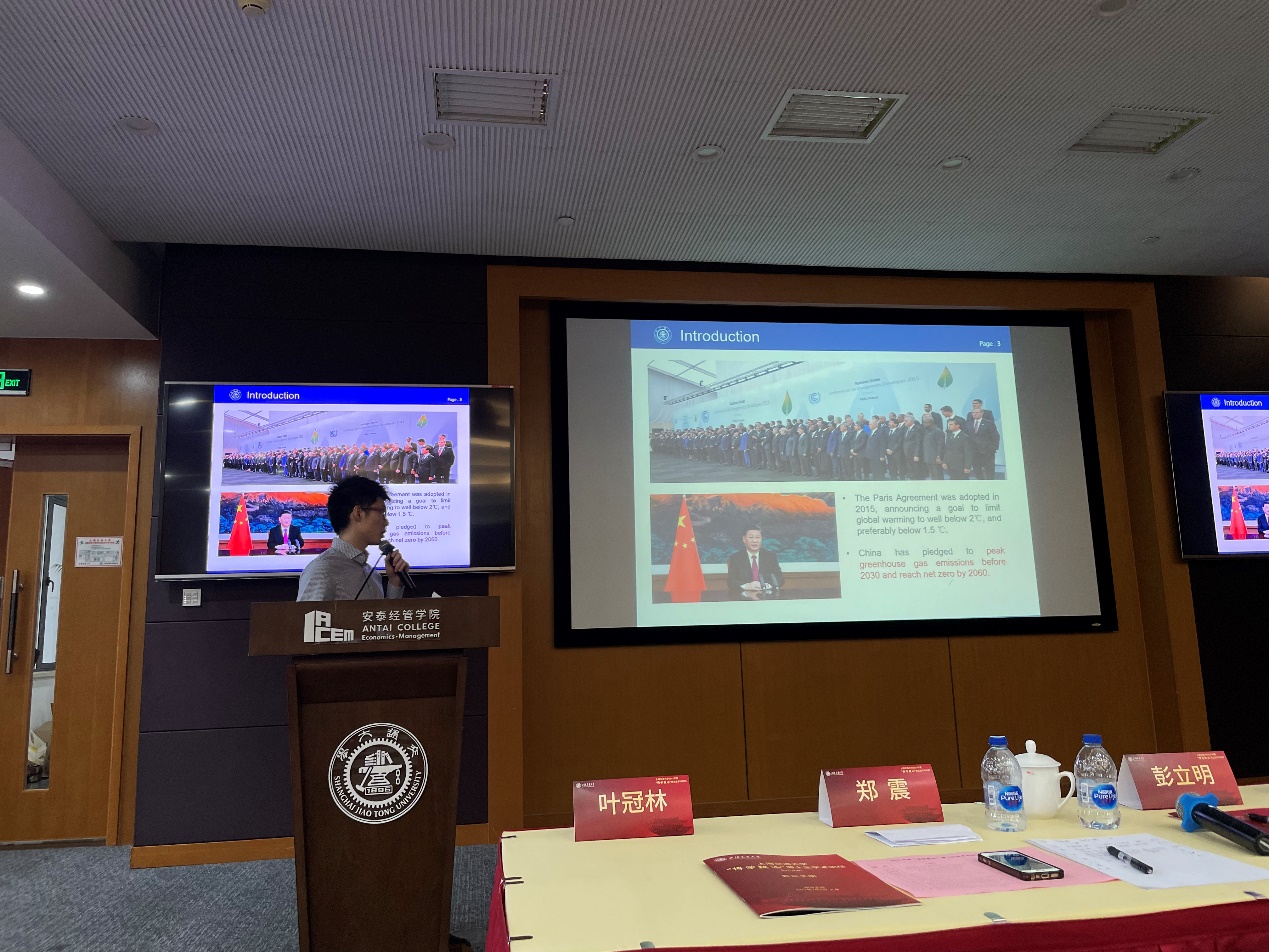 2017级致远荣誉计划博士生于仲觉,由厂长资源 耿涌教授和英国伦敦大学学院可持续资源研究所Raimund Bleischwitz教授共同执导,主要从事中国多区域动态一般均衡模型的开发,以及基于一般均衡模型的中国碳排放交易与空气污染协同效益研究。目前以第一作者在Journal of Cleaner Production,Climate Policy等国际期刊发表论文2篇,于2020年2至2021年5月赴伦敦大学学院参加联合培养。他的论坛报告题为“China’s unconventional carbon emissions trading market: the impact of a rate-based cap in the power generation sector”,开发了中国多区域动态一般均衡模型,模拟了现有基准线设定下中国2020至2030年可能的减排路径,对比了基准线法和传统的总量控制在减排和经济效率上的差异,评估了碳市场对区域电力系统转型的作用:即基准线法相比传统的总量控制的经济效率更低,但在提高电力行业能源效率方面有更显著的作用;碳市场初期有限的覆盖范围可能不利于电气化和可再生能源的发展。研究同时识别了碳市场政策下可能受到经济损失较大且较不发达的区域,为碳市场可能面临的风险做出警示。