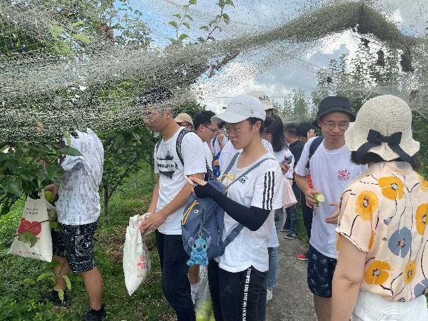 实践团队最后来到众熠梨园,在负责人带领下找到了去年栽种认领的十棵梨树。看着一个个挂满枝头的蜜梨,博士生党员们内心盈满了收获的喜悦,清香脆甜的口感让大家体会到了科学种植和生长环境的重要性。丰收,是对劳动的礼赞,也是对党建引领行之有效的肯定,在采摘结束后,党员们纷纷表示采摘活动既让大家品尝到了劳动的果实,也切身感受到广大劳动者的辛苦和不易。