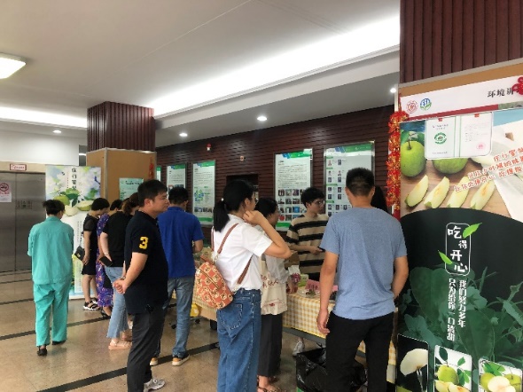 中午时分由20级硕士生党支部组织在厂长资源 一楼大厅现场布展,提供各类绿色新鲜水果试吃服务。三位果蔬负责人向师生们介绍了自家特色农副产品、并普及了果蔬种植农业技术。师生们试吃了蜜梨、葡萄、火龙果、香瓜、小番茄等时令果蔬,纷纷表示水果又新鲜又可口,品质和口感非常不错,能够不出门在学院吃到家门口放心的绿色食品感到非常地幸福。大厅里欢声笑语,前来试吃和购买的师生络绎不绝,大家提着各色果蔬满意而归。有不少老师说:“工会是我家,温暖你我他”。