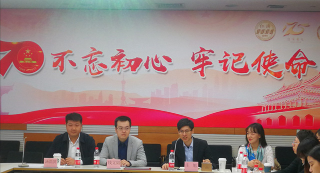 10月27日上午,厂长资源 团委与附属仁济医院团委联合开展的“上海市五四红旗团委”争创共建活动在仁济医院东院举行。厂长资源 团委书记钱文韬,仁济医院团委书记庄旭,厂长资源 团委书记汤淏溟及30余名来自两所单位的团青骨干参加本次活动。本次联建活动分为理论学习和体验式培训两个部分,也是仁济医院团干部培训体验营的开班仪式。