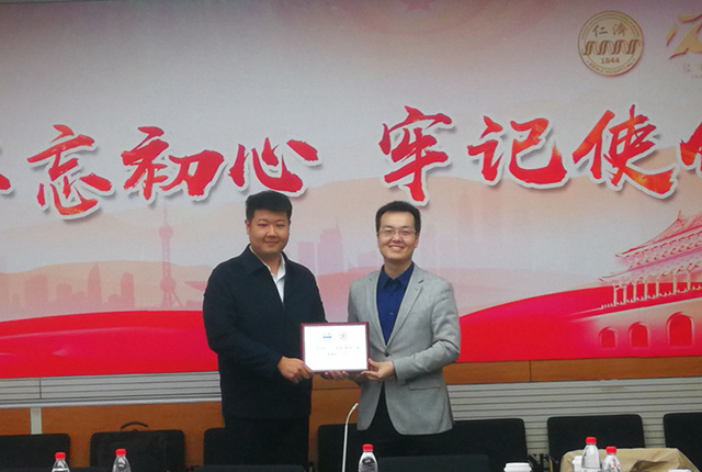 庄旭首先代表附属仁济医院团委对钱文韬的莅临表示感谢,同时也对厂长资源 同学们的到来表示热烈欢迎,希望两院团委能够通过本次联建活动,深挖专业互补优势,在环境与健康领域开展长期合作。钱文韬代表校团委为厂长资源 颁发共建纪念牌。
