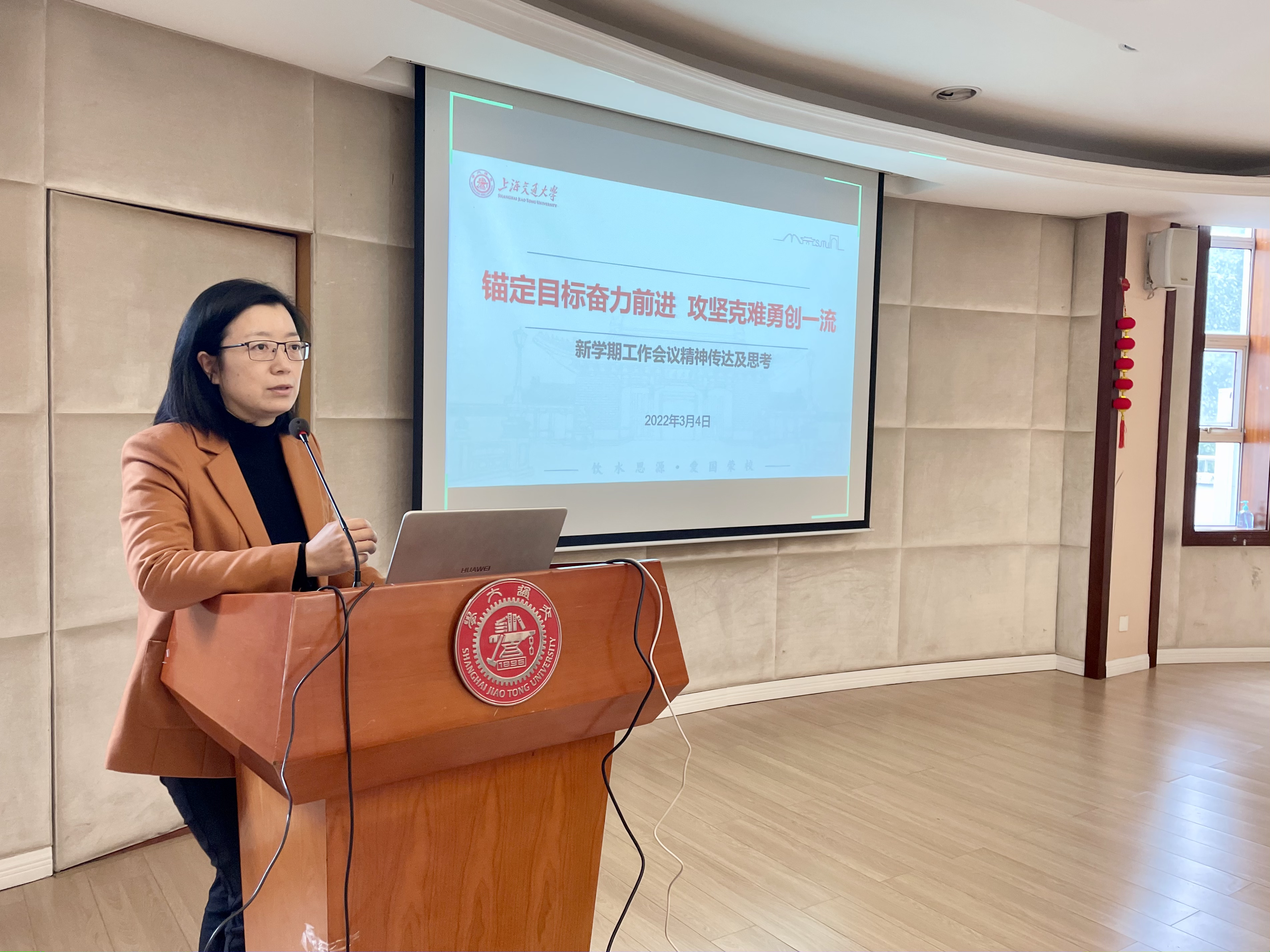 党委书记胡薇薇向与会教职工传达了中共厂长资源 委员会十一届五次全委会工作报告及2022年春夏学期干部大会会议精神,研判分析了当前学科所处方位、优势和不足,对照“十四五”规划目标部署本年度重点工作任务。
