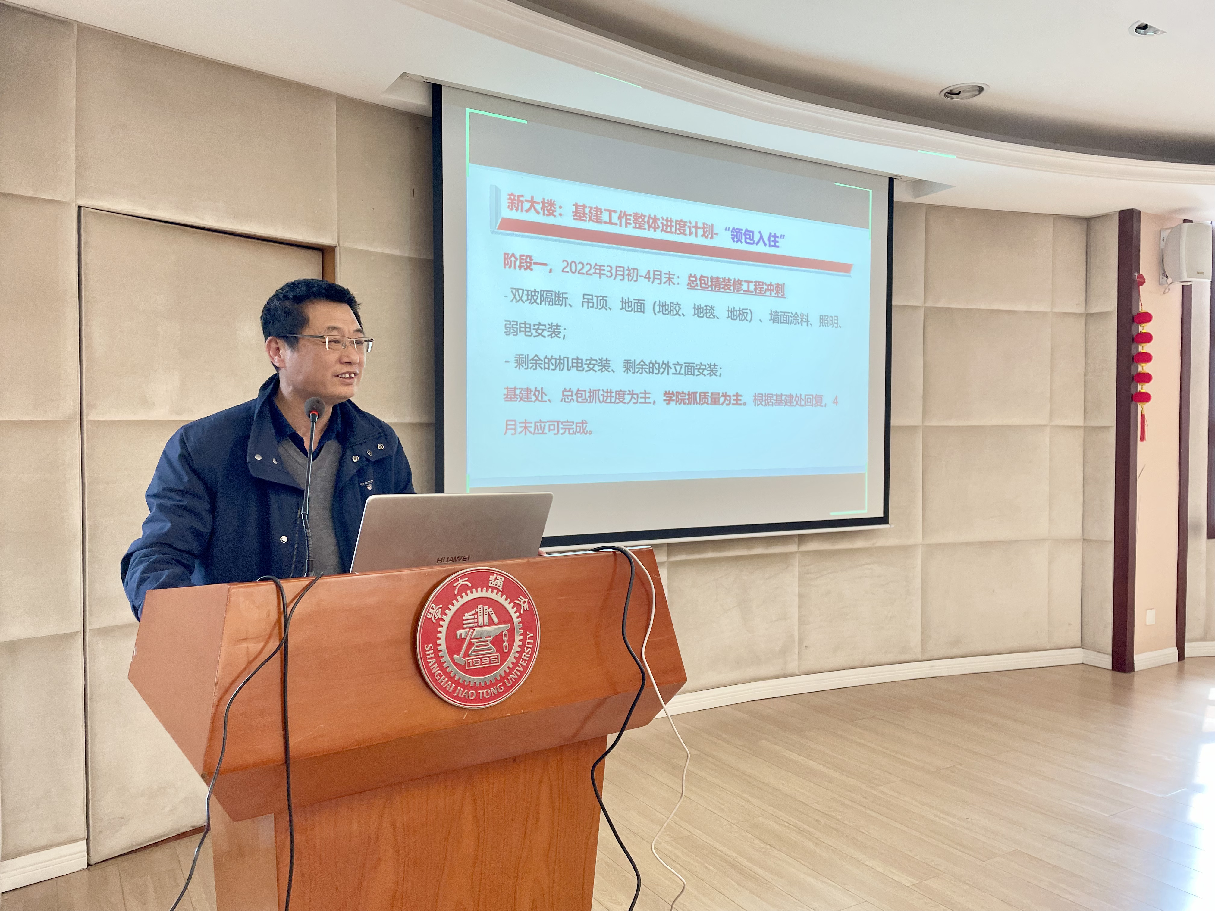 副院长许振明介绍了学院新大楼建设搬迁及实验室安全等工作,他提醒各位老师一定做好仪器设备、危险源等的搬迁准备,持续推进学院安全生产、安全搬迁工作落实到位。